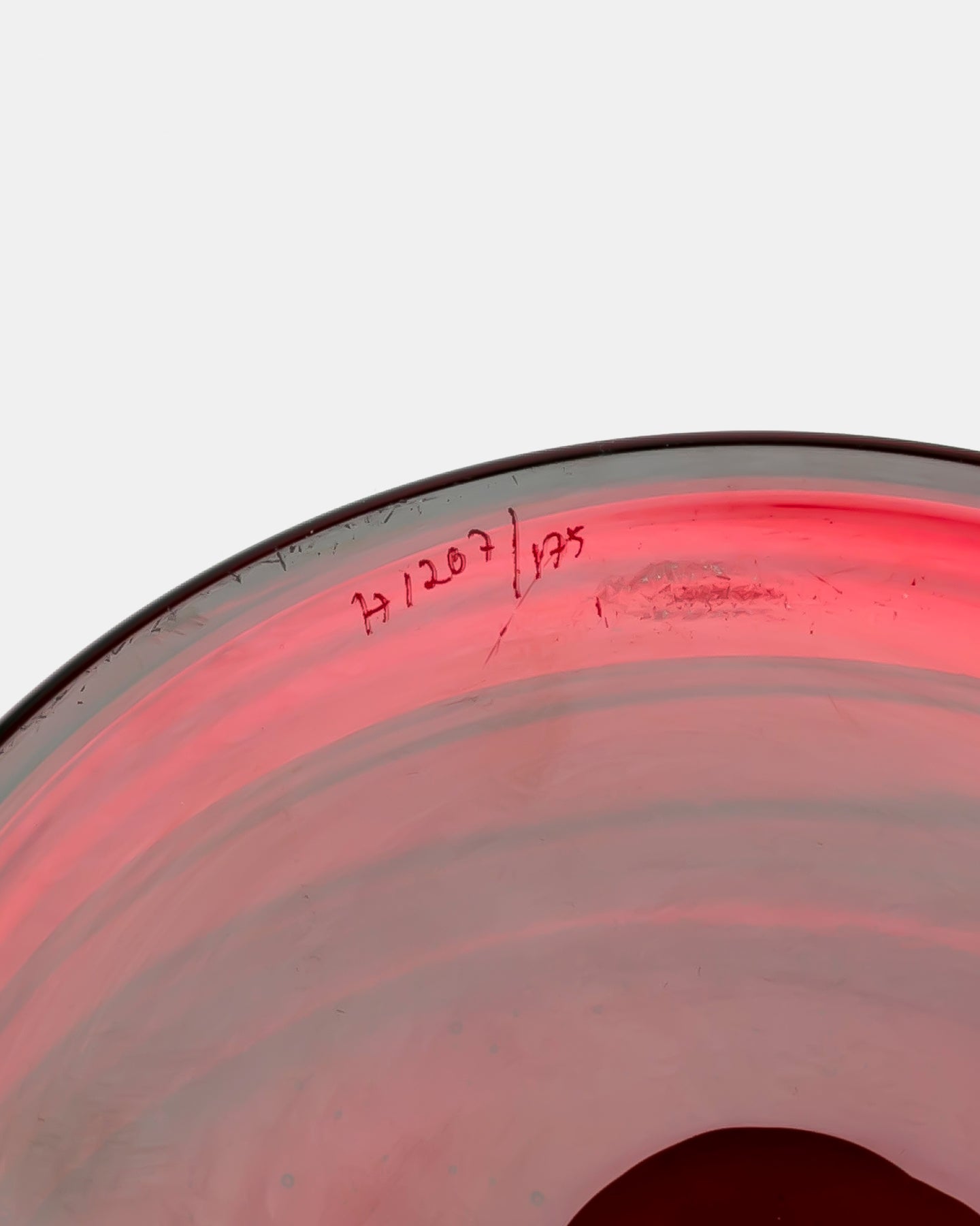 このモデルは1960年代前半にデザインされ、赤い気泡入りのガラスは1962年にバリエーションに加わりました。帯状に黒い部分のある赤