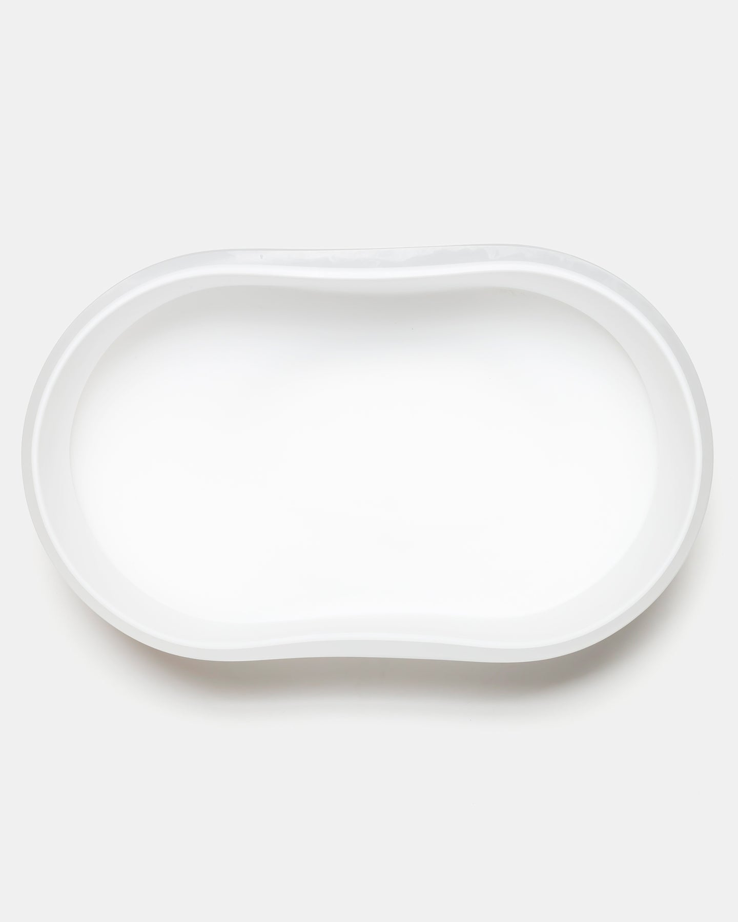 グラフィカルなパターンのファブリックと調和するようデザインされ、ファブリックの動きを切り取ったかのような、緩やかな曲線からなる楕円フォルムの作品です。