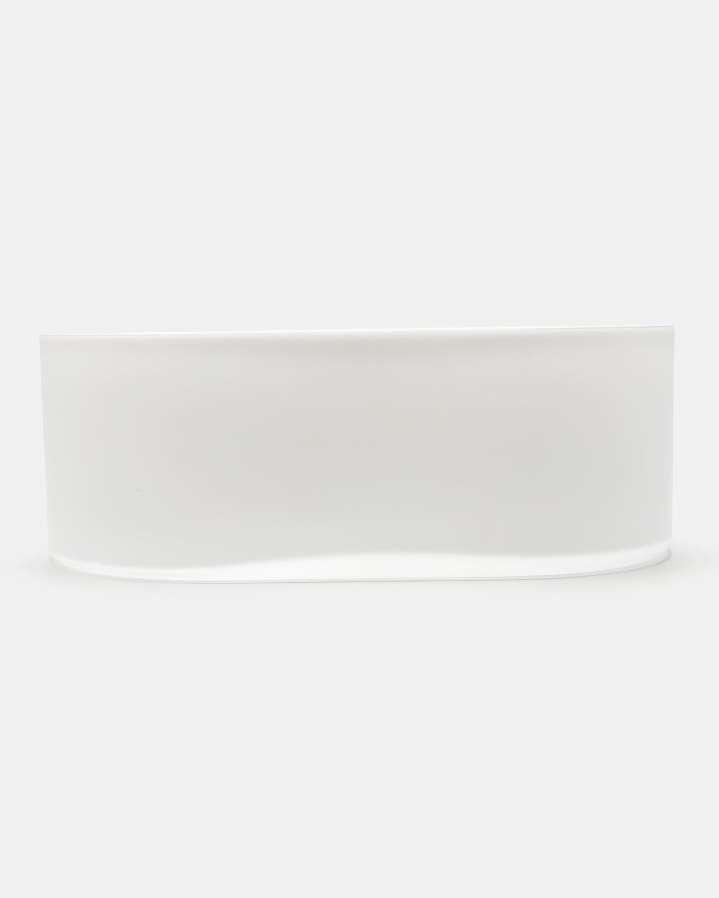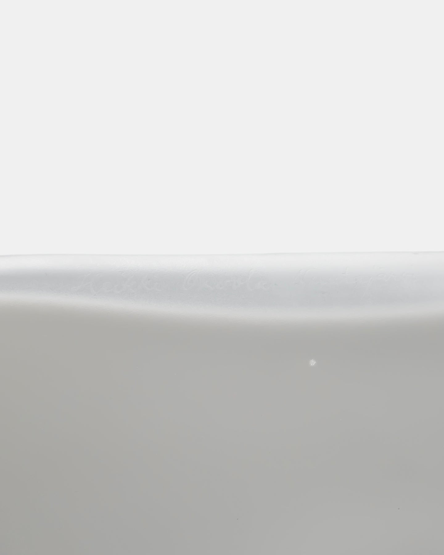 重量感のある分厚いガラスは、内側が白、外側が透明ガラスで全体にフロスト加工が施された柔らかな質感。