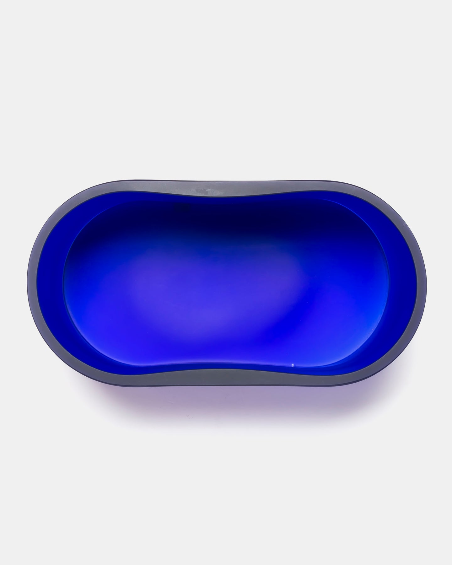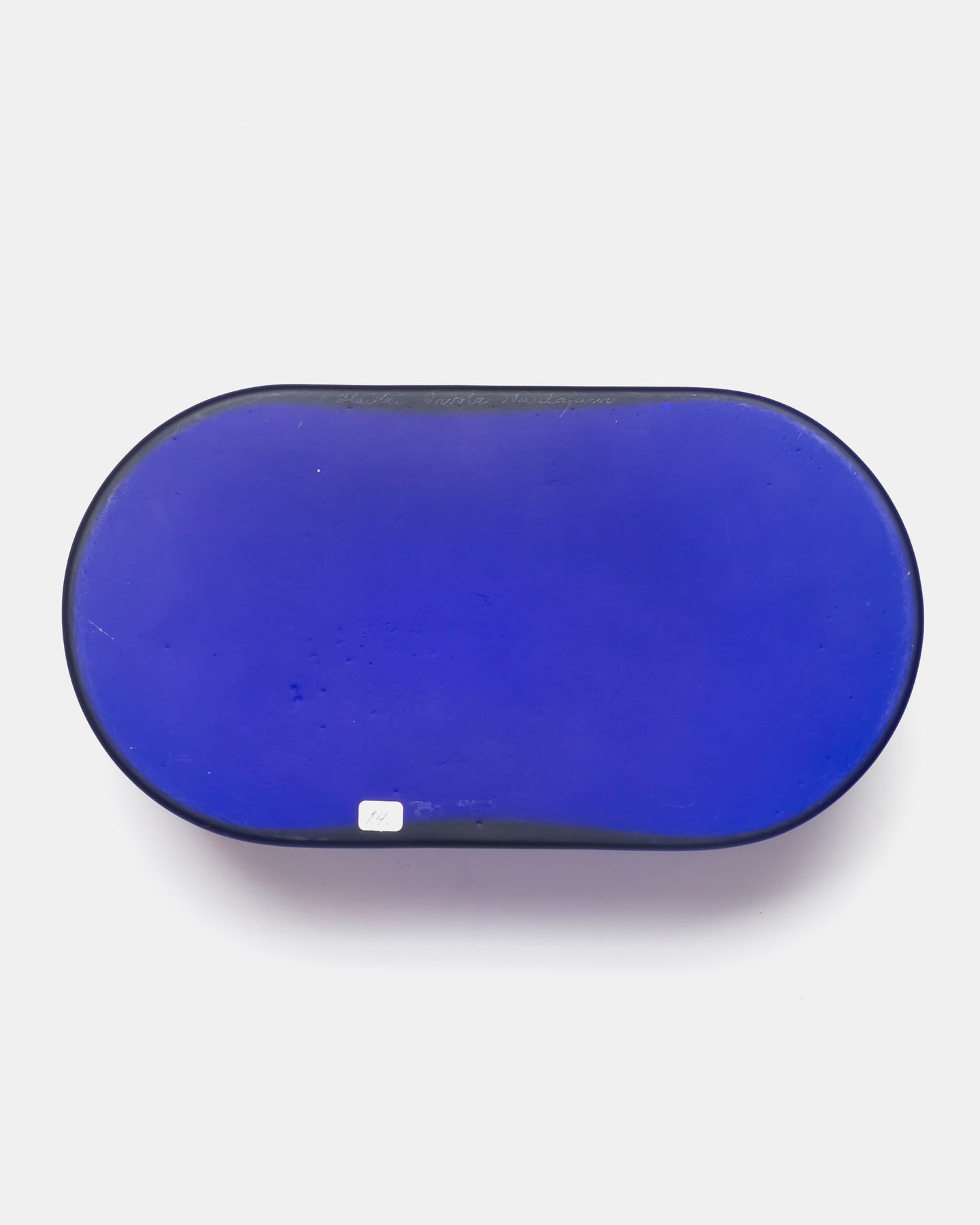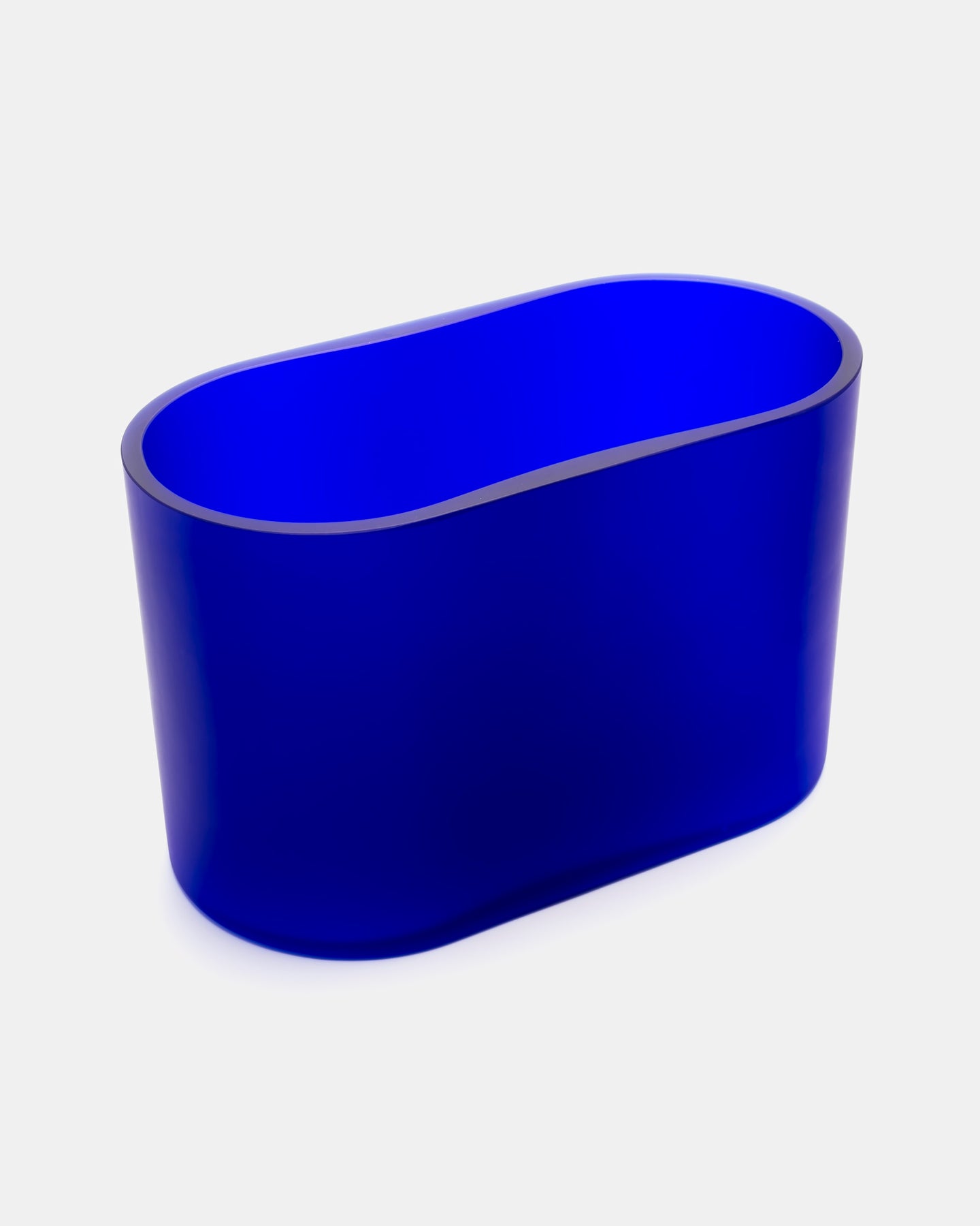 重量感のある分厚い青いガラスにフロスト加工が施された柔らかな質感。