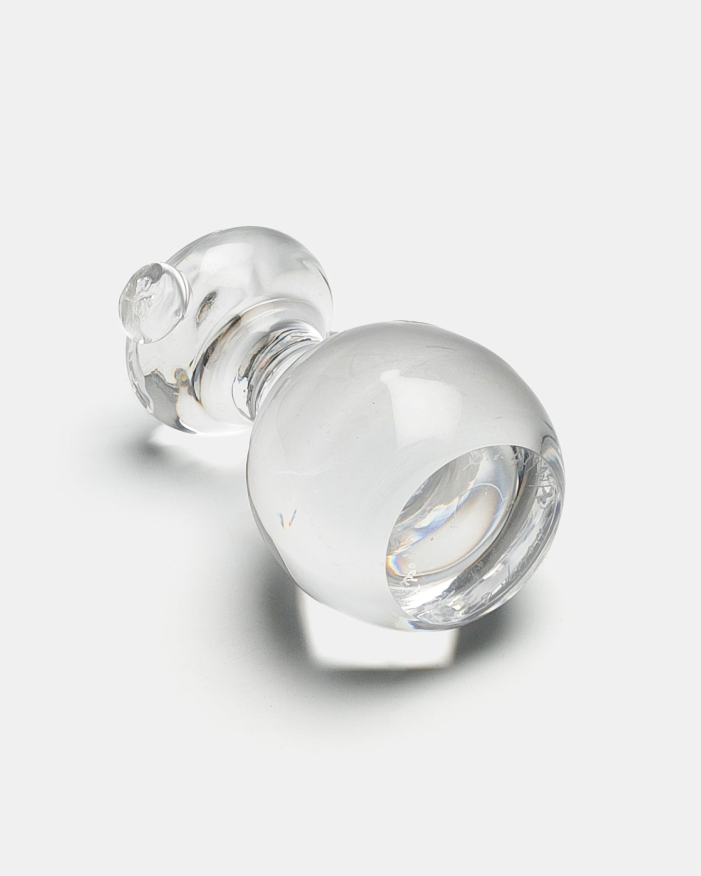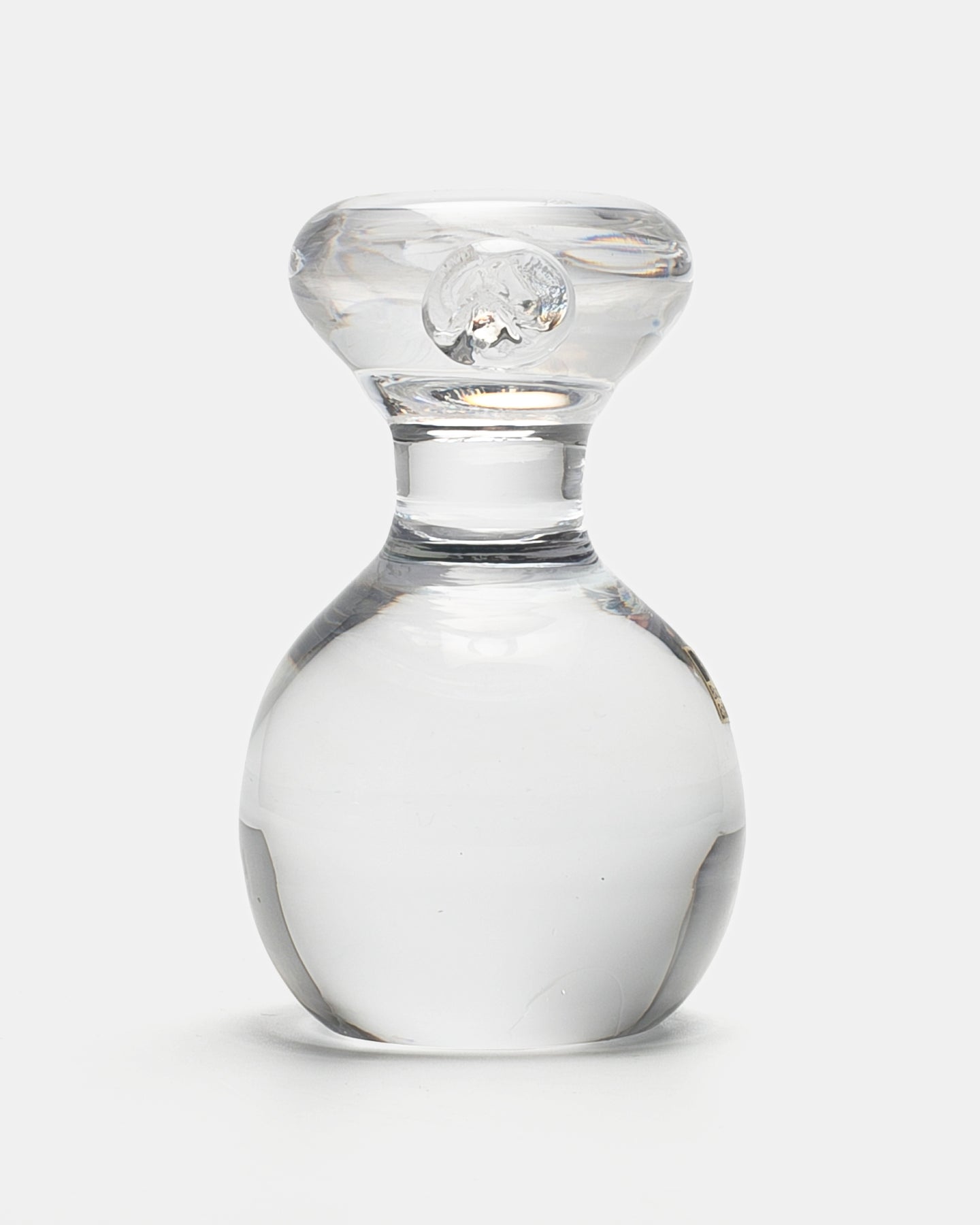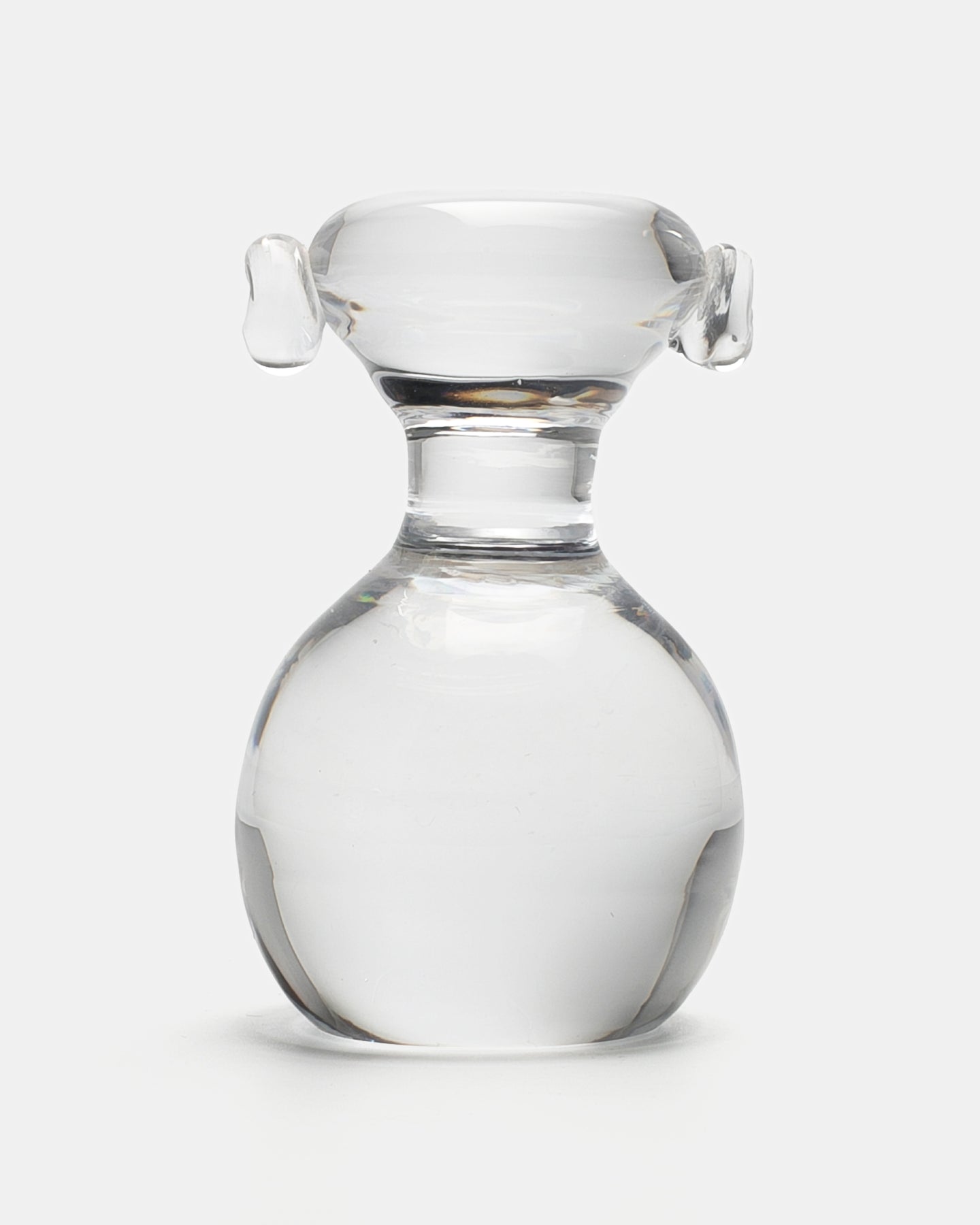 透明なクリスタルガラスの持つ量感が、その純粋な造形と静かな存在感をいっそう際立たせています。