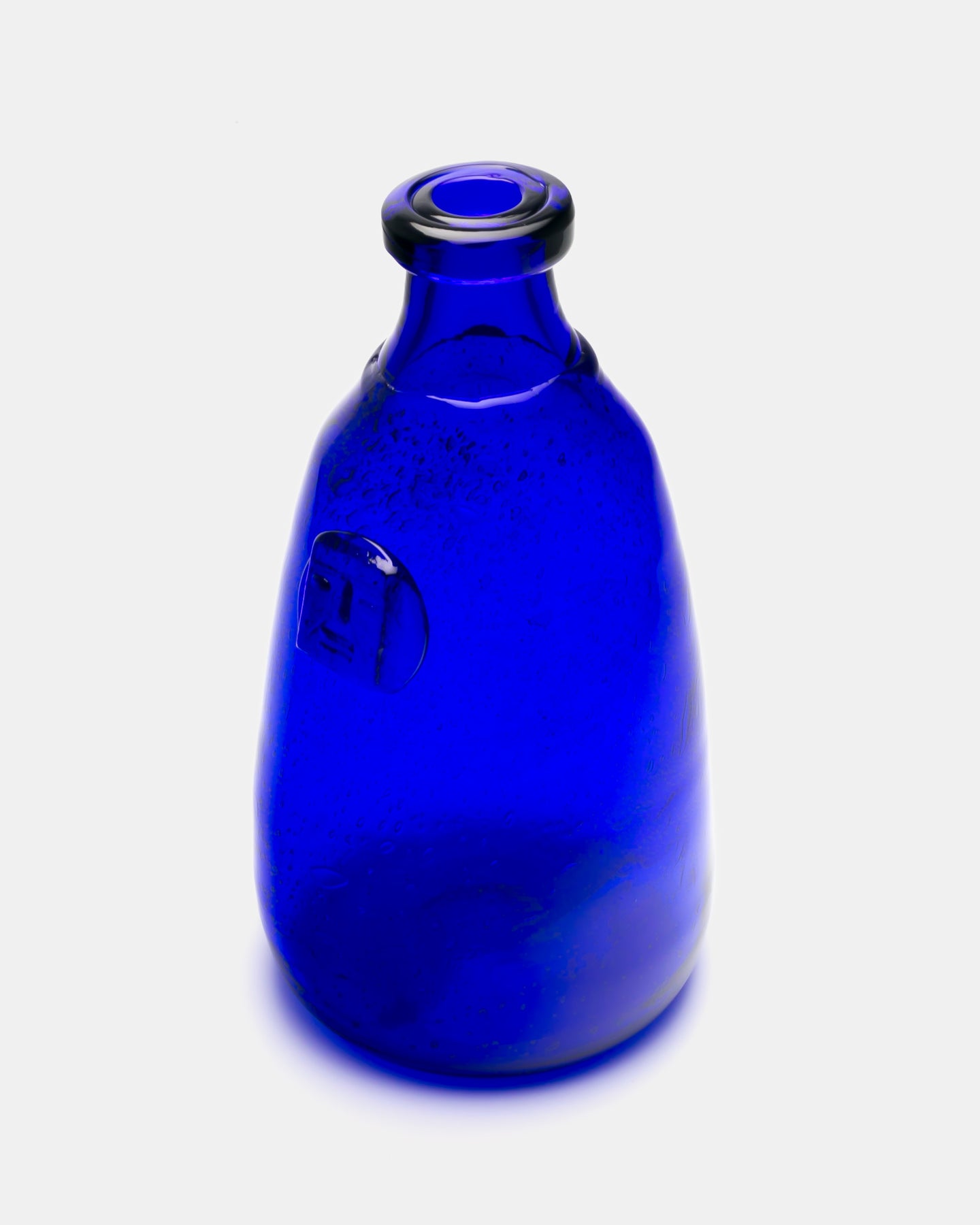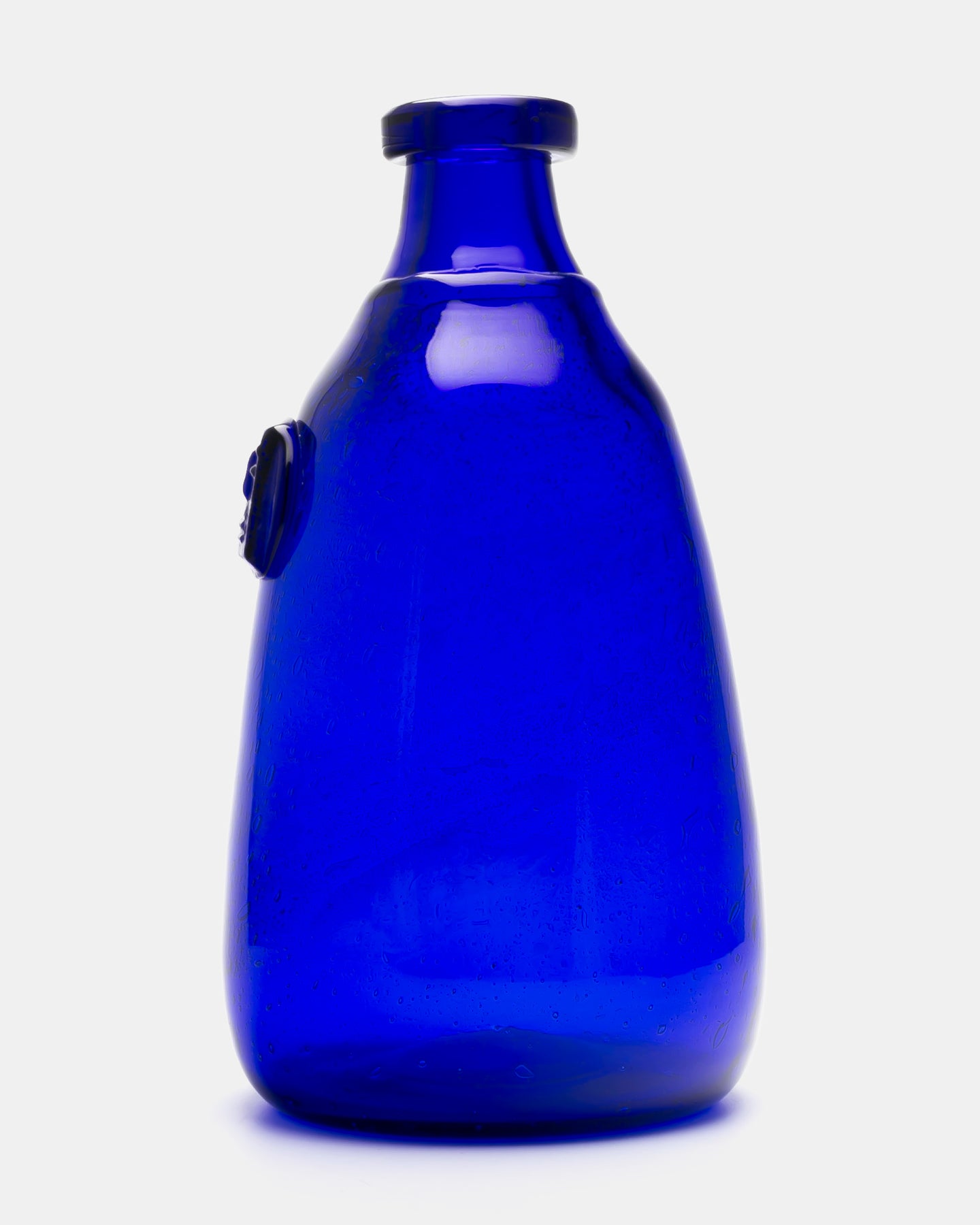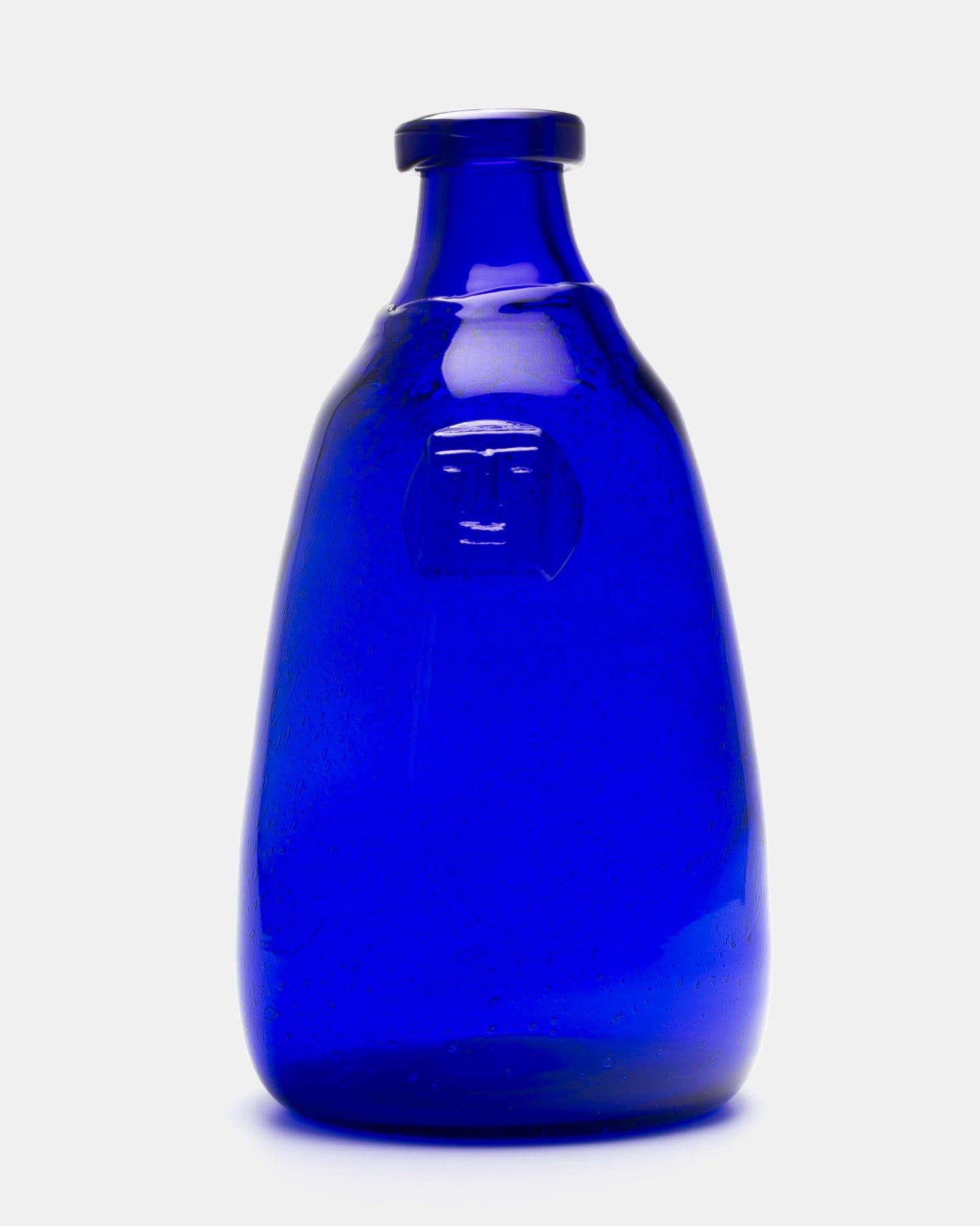 古いガラスのボトルには、機能としてメーカー名や容量などがアップリケに型押しされていましたが、Erik Höglundはこれを装飾として用いました。