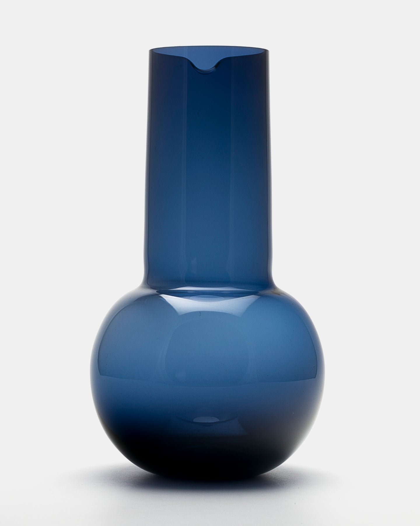 型吹き(廻し吹き)によって成形されており、サイズやガラスの厚み、注ぎ口のかたちなどに個体差が見られます。