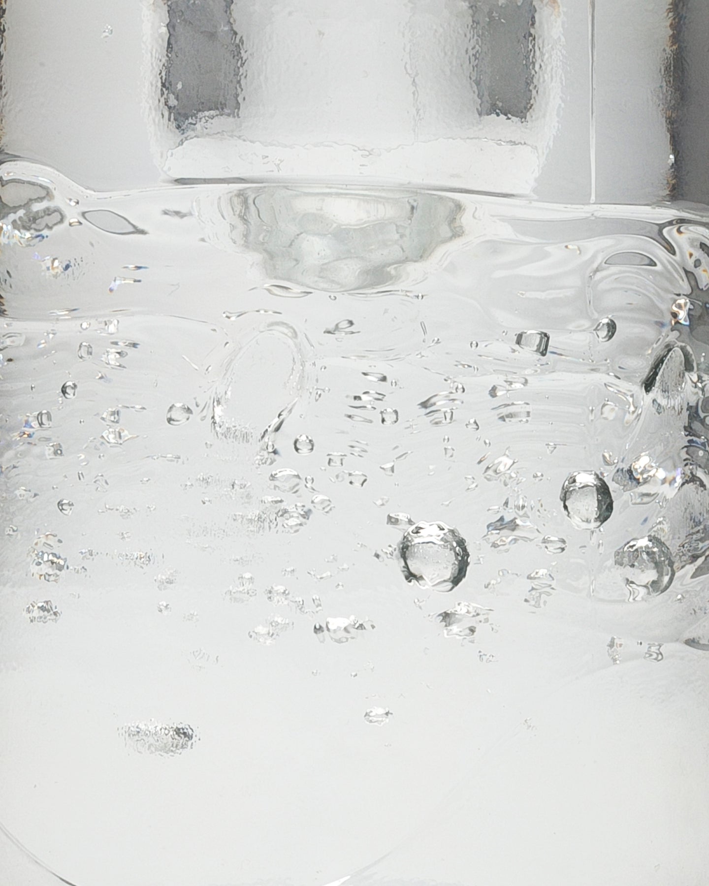 内部には大小さまざまな気泡がランダムに浮遊するのが特徴です。