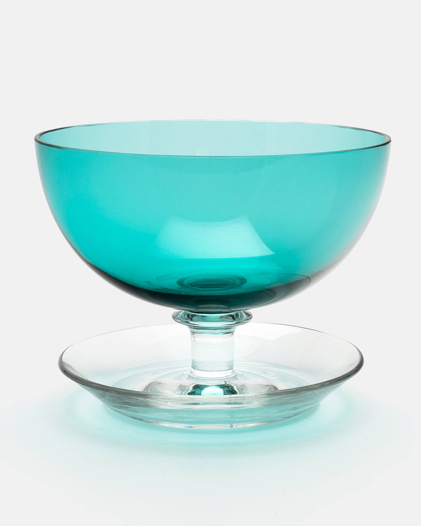 彼女が数多くデザインしたステムウェアの一つで、フット部分がカトラリーを置けるようプレート状になったアイスクリームボウルです。