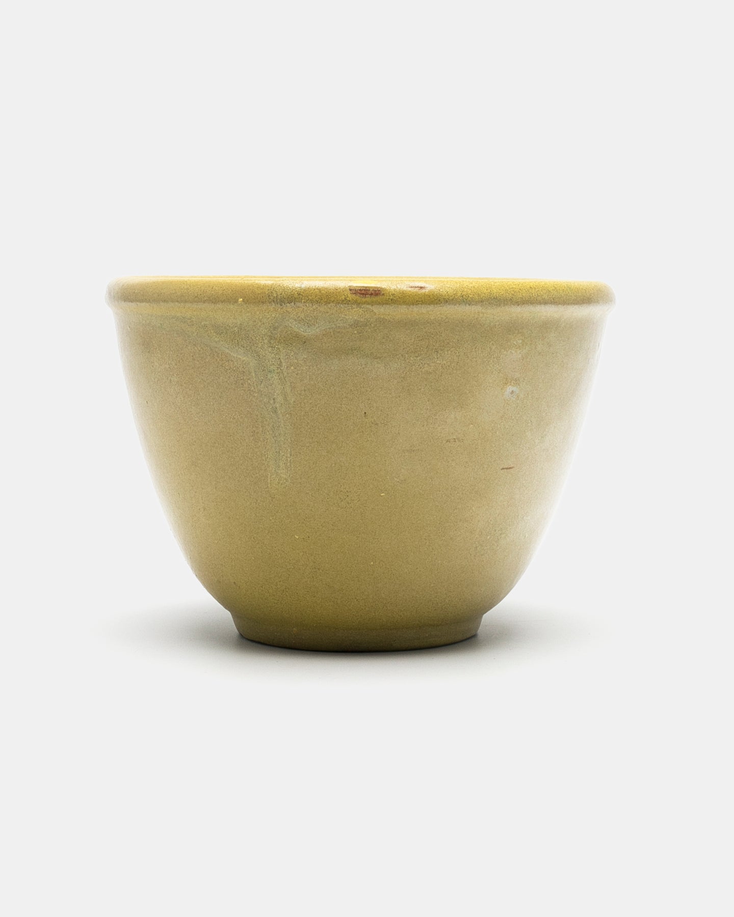 赤土の素地に、ムラのあるマスタードイエローの釉薬が掛けられています。
